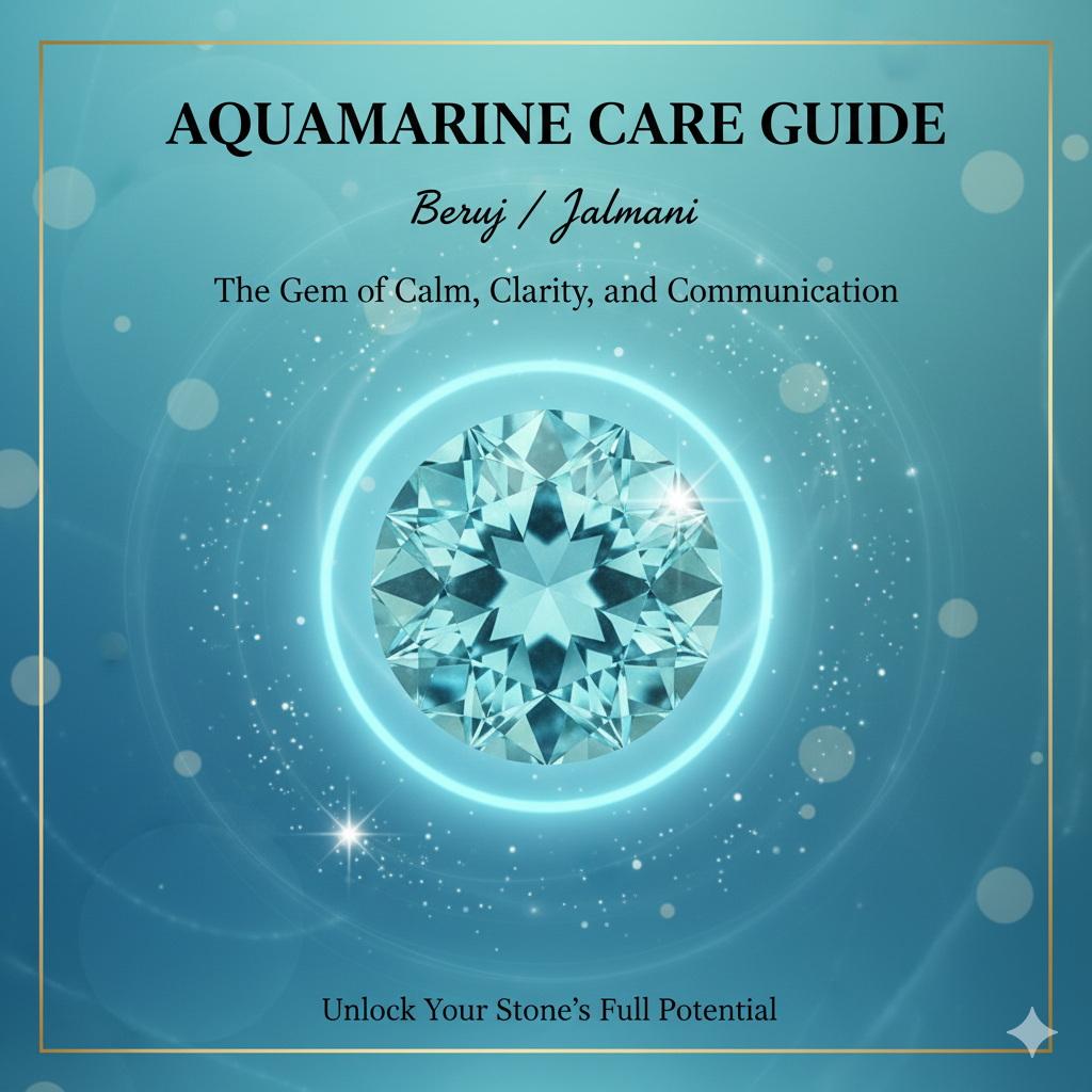 Aquamarine, also known as Beruj or Jalmani in Hindi, is a serene blue to bluish-green gemstone admired for its gentle energy, oceanic hues, and calming influence.