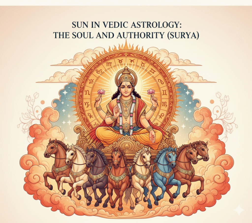 Sun as the Cosmic King Introduction In Vedic astrology, the Sun (Surya) is regarded as the soul of the cosmos,