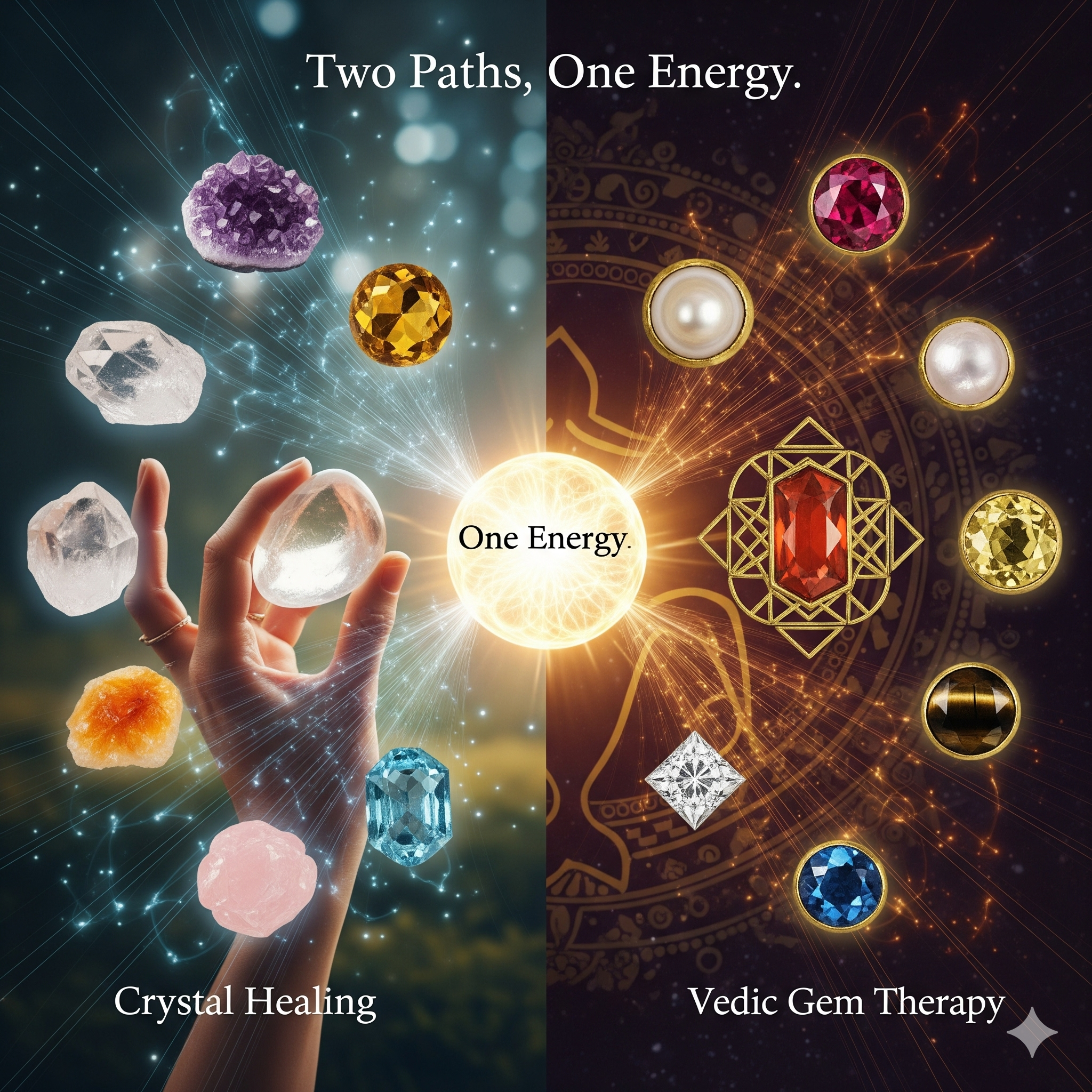Crystal healing and Vedic gem therapy are complementary, not opposites.